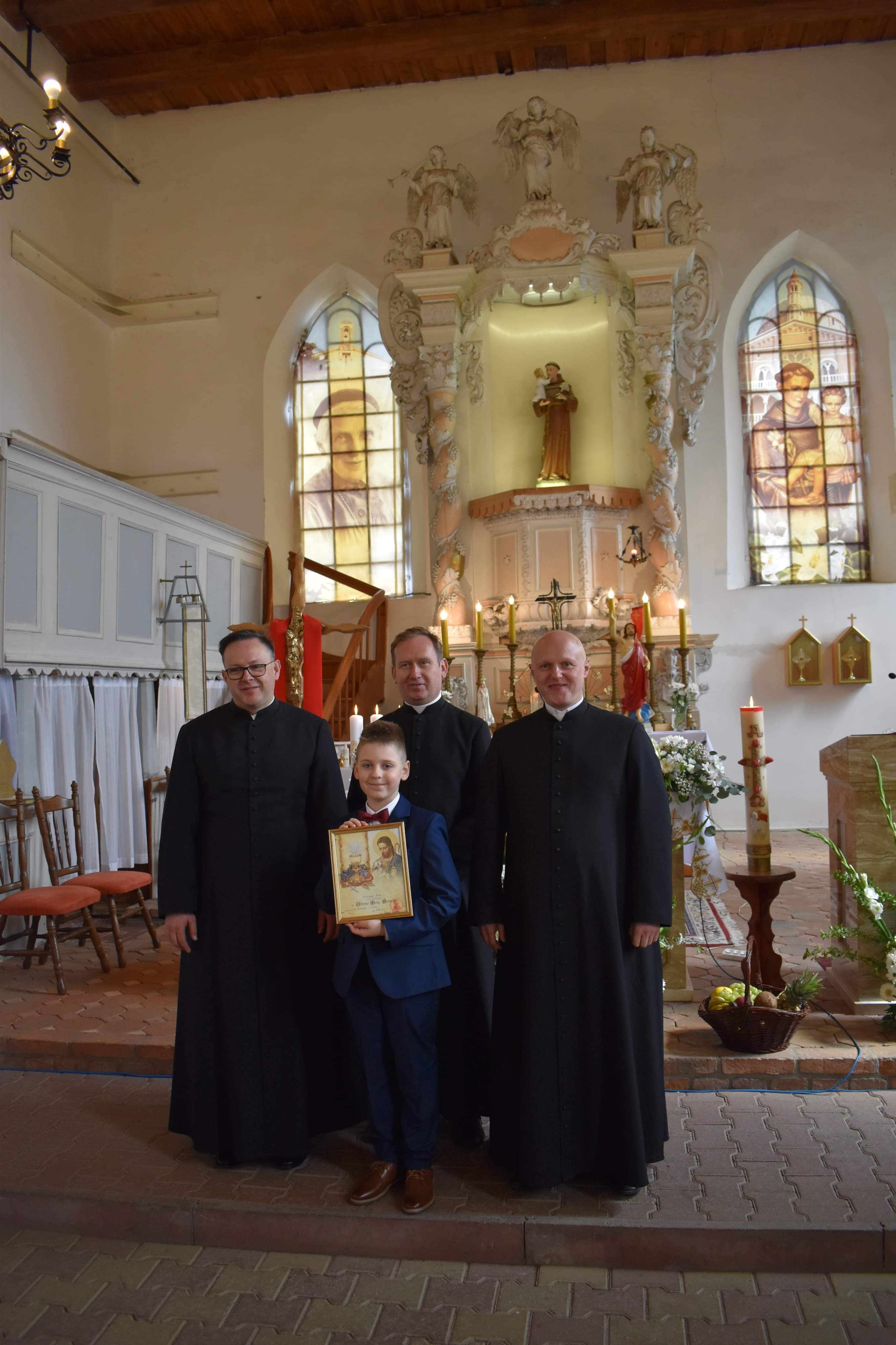 2. Wczoraj nasza wspólnota przeżywała dzień I Komunii świętej. Tutaj na placu po raz pierwszy uczestniczył w pełni we Mszy świętej Antoni a w parafii w Buku Franciszek.